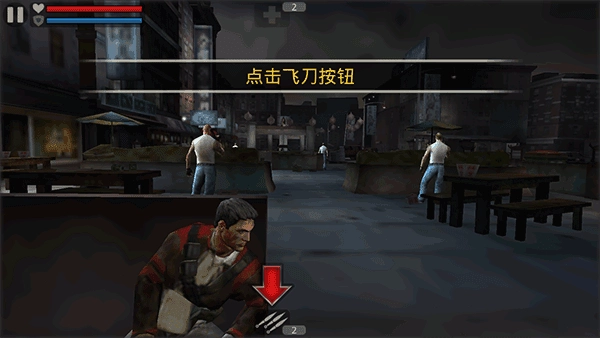 5、加满血后系统提示我们使用飞刀的技巧,飞刀是消耗品比较贵,但是非常厉害。点击要攻击的敌人,一个飞刀过去就死了,比机枪都厉害。