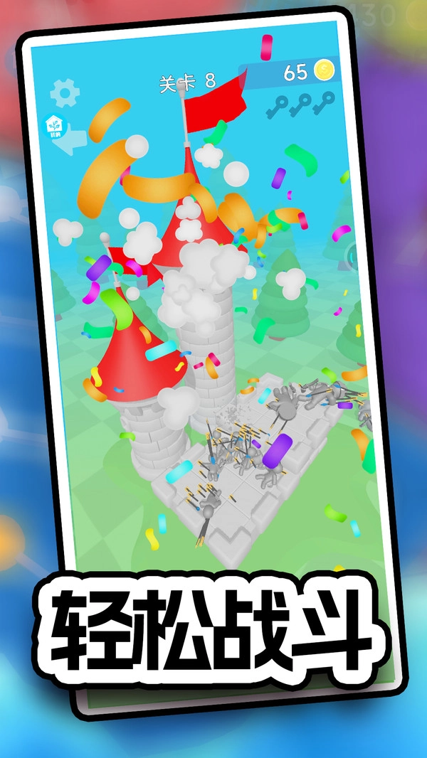 在守卫你的城堡时,玩家得搭建防御设施,还得巧妙布置火柴人士兵的阵形,以此来击退越来越厉害的敌人。随着游戏的推进,你会逐步提高自己的射击本领,去适应各种各样的战斗场景和战术计谋。精准的瞄准加上有策略的布阵,你能体会到射击和塔防元素的巧妙结合,从而建立起牢固的防御阵线。通过完成各种挑战和任务,收集材料来合成更高级的弓箭,增强基础属性,还能解锁像穿透箭、爆炸箭这样的特殊效果。