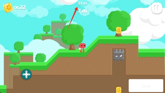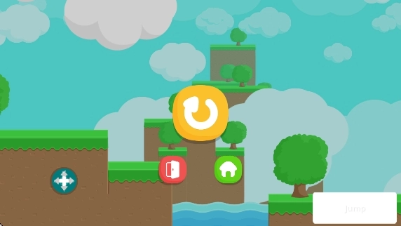 2、通过屏幕左边按钮操控角色移动,右边按钮进行跳跃。