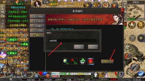 输入方式极为简单,只需点击福利选项,获取礼包即可。