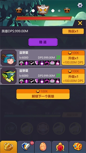 1、玩家能够花费金币招募英雄并提升其等级,完成关卡即可获取金币。