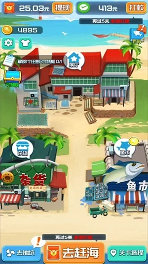 1、非常多赶海的关卡可以让你去游玩体验,赶海获得的物品越多,奖励的红包越丰富。