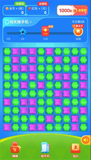 2、每完成一个关卡的目标,就能领取红包,签到也可以获取红包奖励