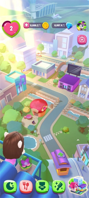 2、在城市界面,你将来到公寓的阳台,这里展示了各种不同的建筑。