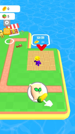2、走到相应的位置,即可解锁这个位置的功能,如空地、菜地。