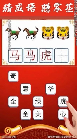 这是一个成语答题小游戏,玩法很简单,你只需找出正确的汉字填入空缺处就行,不管是老人还是小孩都能轻松上手。