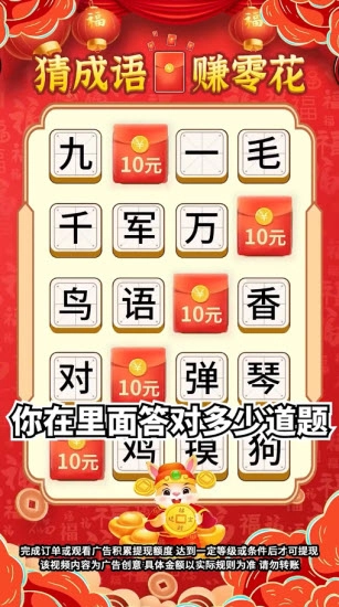 这是一款题材常见的成语答题游戏,关卡数量颇为丰富,难度也会随着进程逐步提升。操作方式十分简便,仅需点击即可完成,而且游戏提供的奖励也相当丰厚。