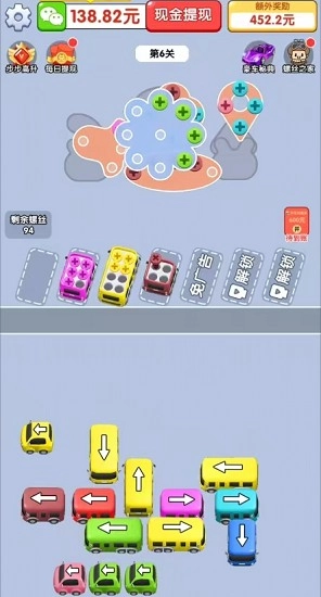 这是一款轻松休闲的螺丝消除游戏,即使在开车时也能轻松游玩。玩家需要通过消除螺丝来完成各类挑战,游戏中包含多种颜色的螺丝等待消除,丰富多样的玩法将为你带来别样体验。此外,还有各种各样的奖励任务可供选择完成,你可以不断获取更多红包,尽情享受最有趣的闯关乐趣。