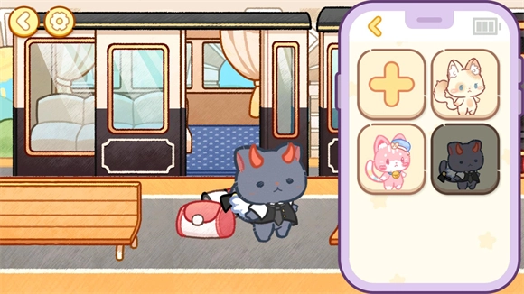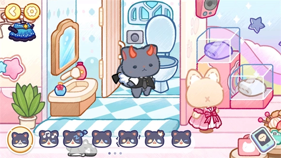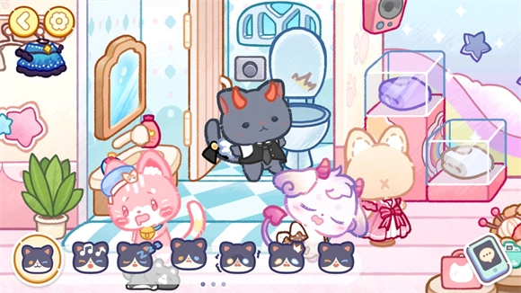 1、可爱的猫咪角色可以让玩家自己创建,丰富的样式和服装可以定制喜欢的猫咪角色。