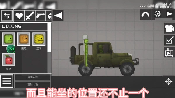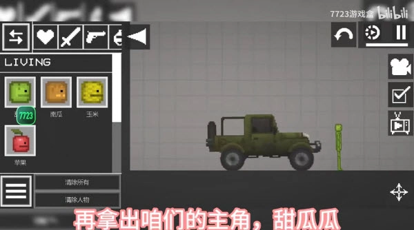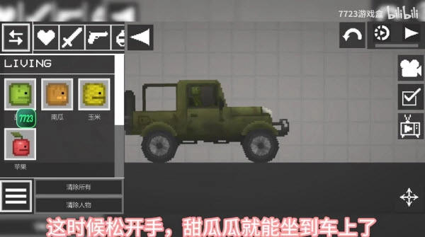 3、下面我们把时间暂停,再将西瓜人拖到车子上,直到车子上有个虚影的西瓜人,如下图所示: