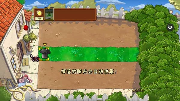 1、刚开始只有一株豌豆射手,直接种下它就行。