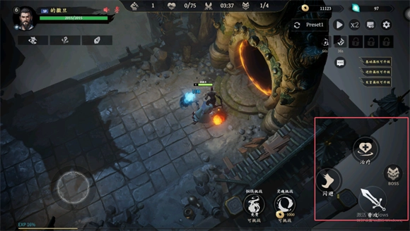 2、点击右方的行动键可以释放技能或者治疗等等