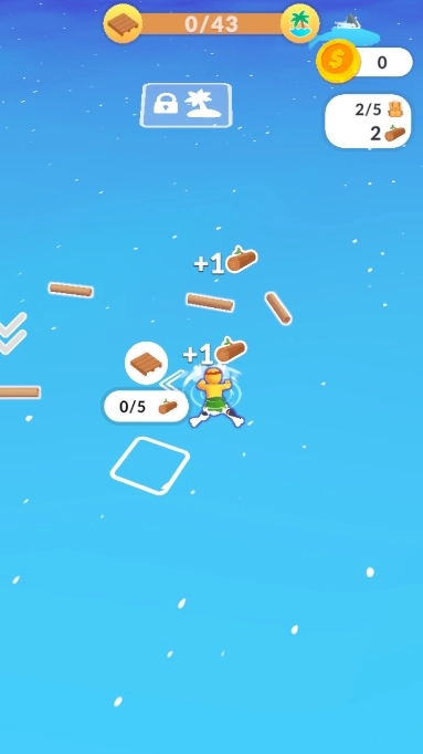 2、一开始,你会在海里。注意收集附近的木材来建造木筏并离开大海。