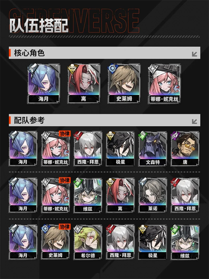 主角(星持)前期实用性高,西隆 / 夏来获取早的话也可作为主力培养;
