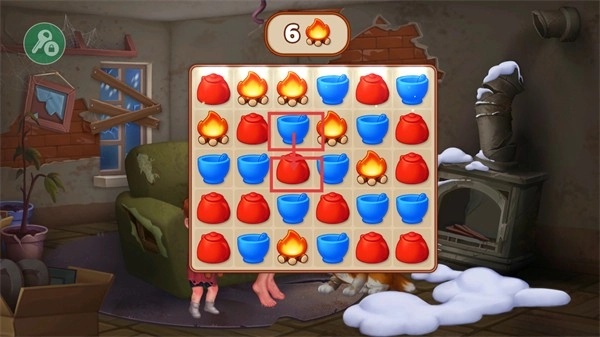 2、参与消除关卡,匹配【火焰】【红色】【蓝色】元素完成消除,累计消除数量达成【6】个火焰目标,推进关卡进度。