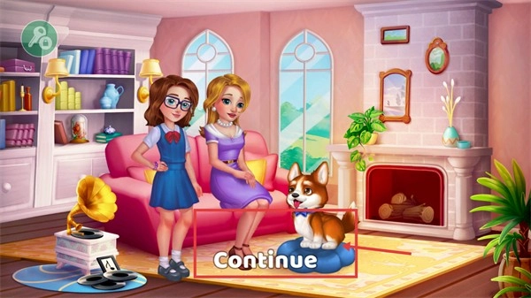 4、完成关卡后点击【Continue】按钮,进入后续场景,解锁装饰后的新环境,推进游戏的剧情与场景解锁流程。