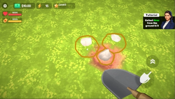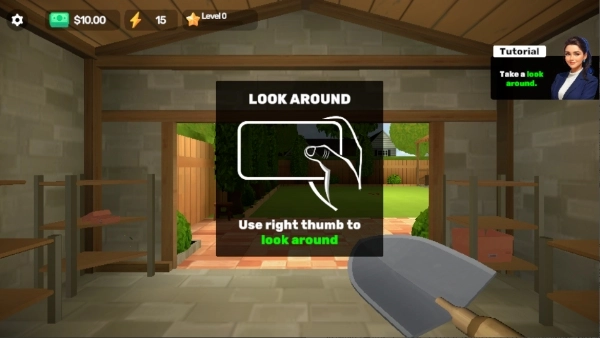 1、在本站安装《掘地求财2》游戏,启动游戏后即可开始挖矿,挖矿过程中可通过右手拇指操作来环顾游戏内的四周环境。