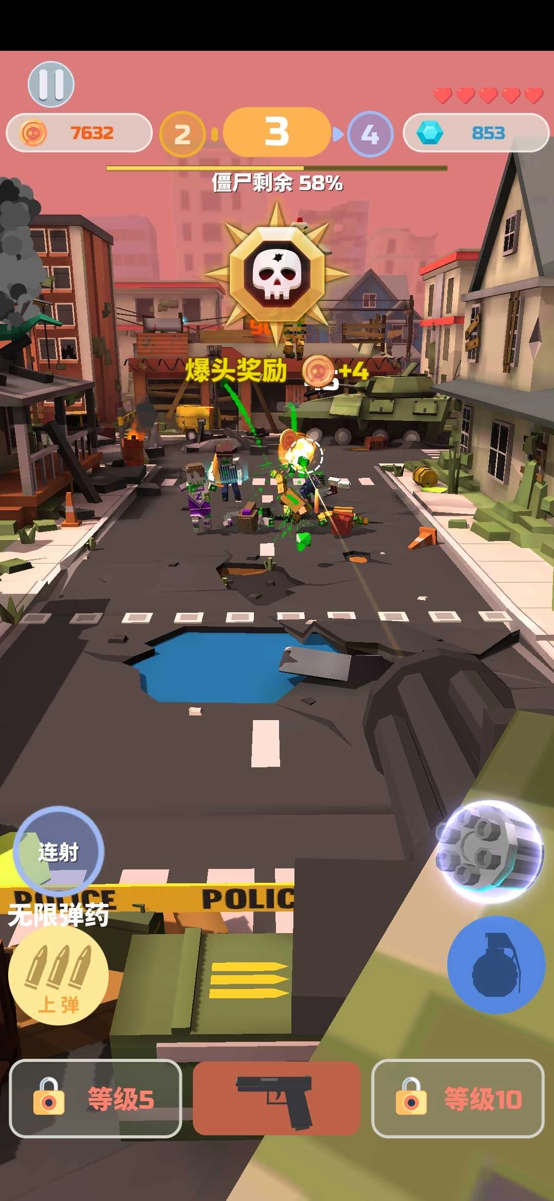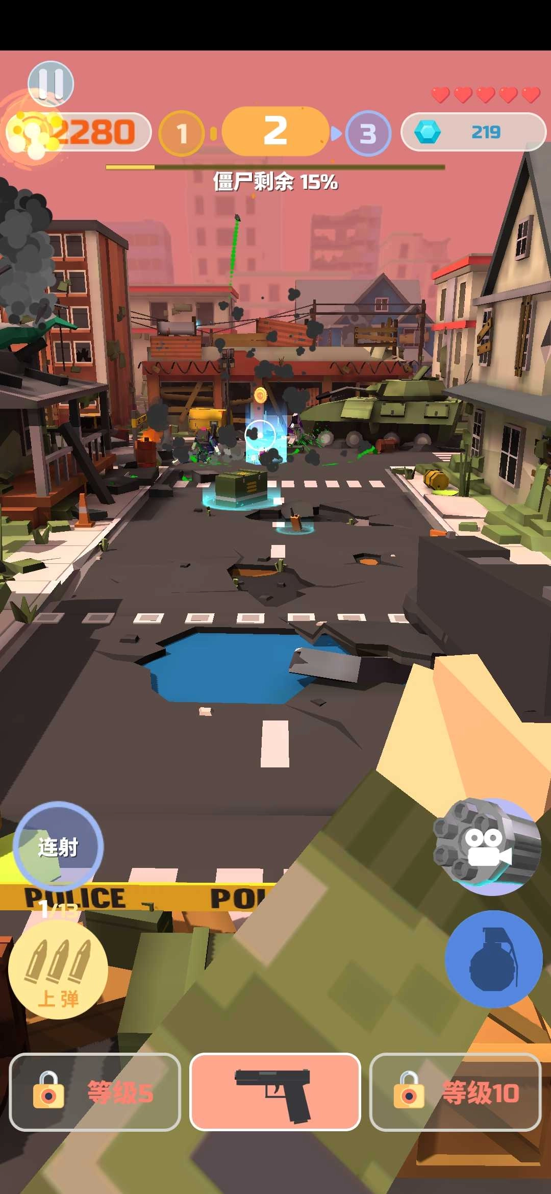 2.丰富关卡等你来挑战,完成游戏中的关卡任务,获取金币,升级装备,面对更加强大的僵尸。