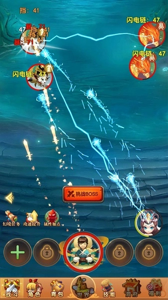 1、丰富的职业体系特色技能,精彩不同的战斗方式,可以挑战不同的BOSS进行实力测试。
