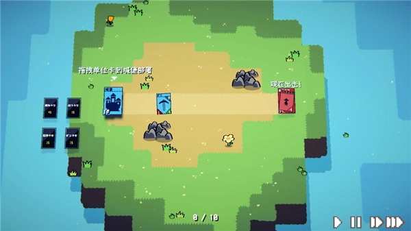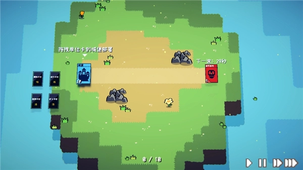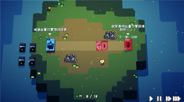 3、然后通过这些资金来购买各种兵种卡牌来抵御敌方兵力的进攻,并且占领敌方的据点来完成闯关。