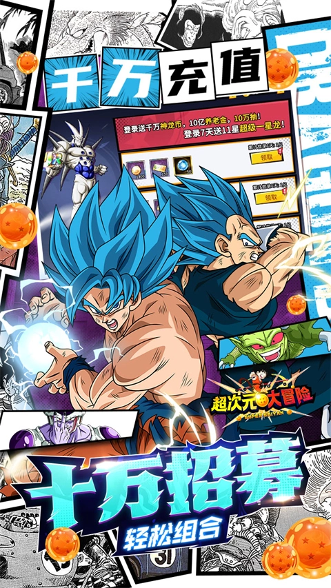 超次元大冒险是一款改编自热门动漫IP《龙珠》的二次元DB动作策略冒险游戏。它凭借绚丽的3D视觉动画,将动漫里的剧情脉络完美还原。玩家将以指挥官的身份,率领超级赛亚人悟空、龟派气功(Kamehameha)及他的伙伴们,踏上一段精彩的冒险征程,目标是拯救龙珠世界!游戏里不仅有龟仙岛、卡林塔、神殿、武道会等经典场景,还能招募心仪角色,组建最强团队并训练他们的技能——像悟空的龟派气功、库林的太阳拳、比克的魔贯光杀炮等,丰富多样的技能体验正等待玩家前来探索。