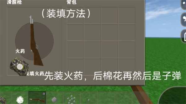 1、先填入火药、再就是棉花,最后就是子弹。