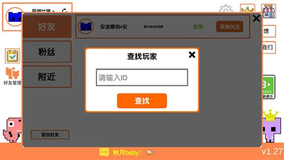 2、在主界面的左侧菜单中找到并点击“好友管理”选项,选择添加好友功能。输入你想要添加的好友的ID,然后点击查找。找到对应的玩家后,点击关注以添加他们为好友。