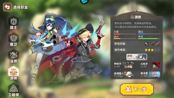 喜欢战斗和冒险,充满幸运的职业,可以通过近战和远程攻击方式自由成长。