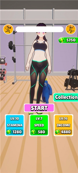 2、游戏拥有stamina耐力、 speed速度、 income收益三种数值可以进行选择升级,等级越高获得的加成也越高,提升耐力可以让女孩们的运动更加持久。