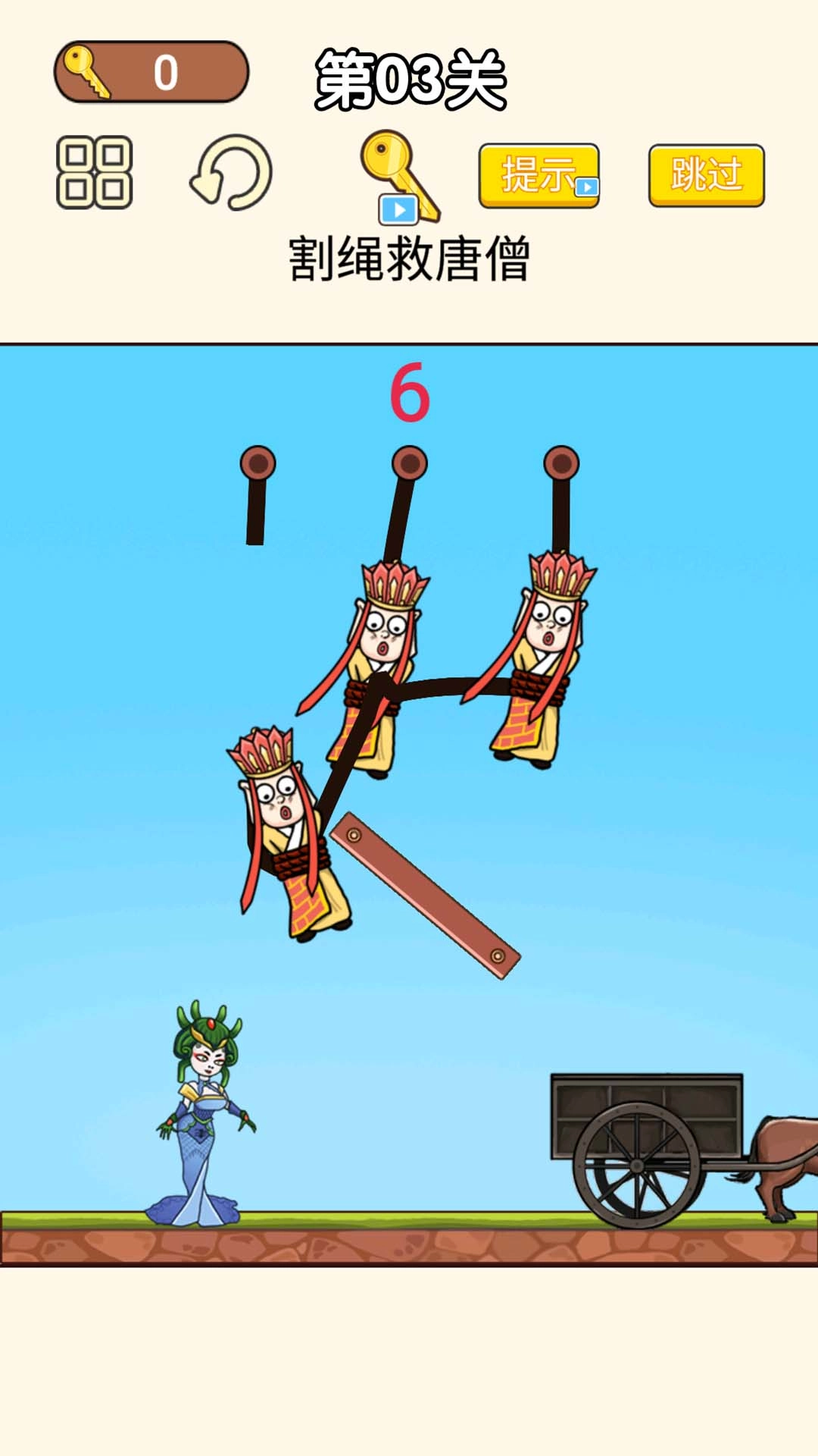 脑筋达人是一款超有趣的闯关游戏,里面设有各种难度的关卡。玩家得运用策略,通过选择切割神索的顺序来拯救师傅唐僧,完成解救任务。快来试试吧!