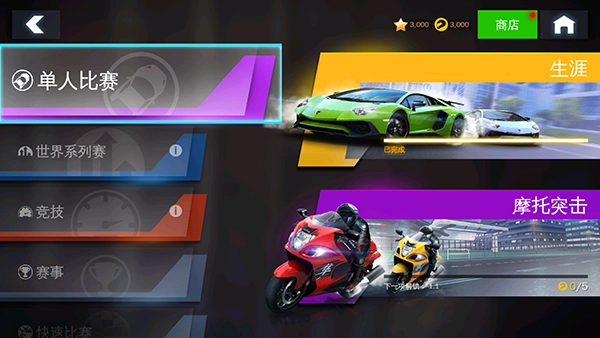 定制和设计赛车和摩托车来展现自我。收集高端顶级车辆,在漂移中探索全新的世界和场景。