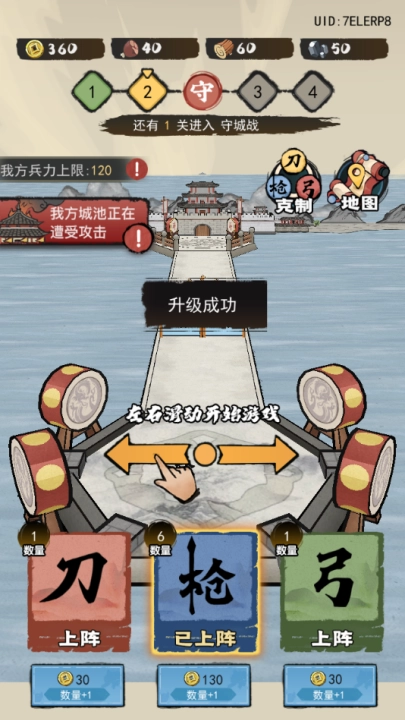2、创新玩法,兵种克制,在跑酷游戏内加入了兵种克制玩法,玩家可根据每座城池不同的情况,选择自己优势兵种。