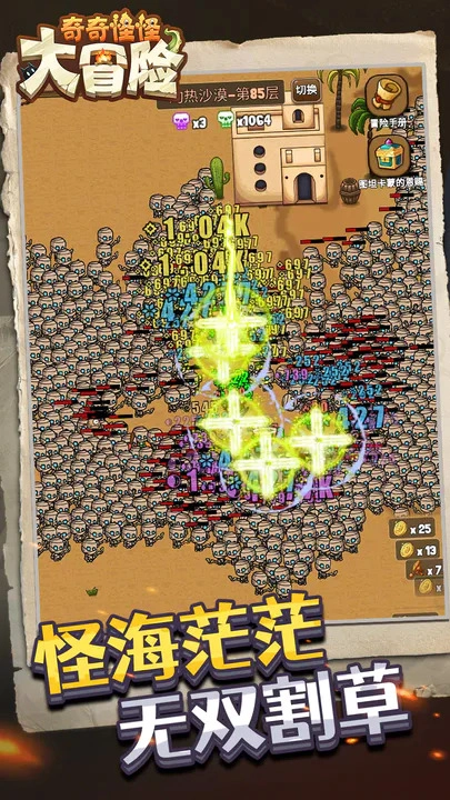 2、无比精彩和刺激的割草战斗,奇奇怪怪的奇幻大冒险,等着玩家们一起来体验。