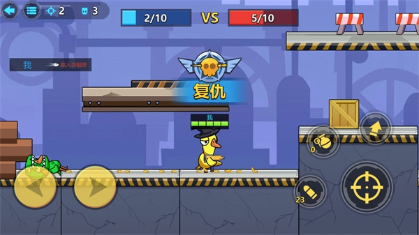 这是一款相当有趣的射击游戏,它既保留了枪战题材特有的射击爽感,又融入了类似狼人鸭那种魔性搞怪的趣味元素。两者巧妙结合,能为玩家带来颇为不错的游戏体验。操控你的角色,开启一场畅快的战斗吧!游戏中还有手榴弹等道具,让战斗过程更加惊险刺激。你需要帮助主角躲避敌人的攻击,并将所有敌人都消灭干净。