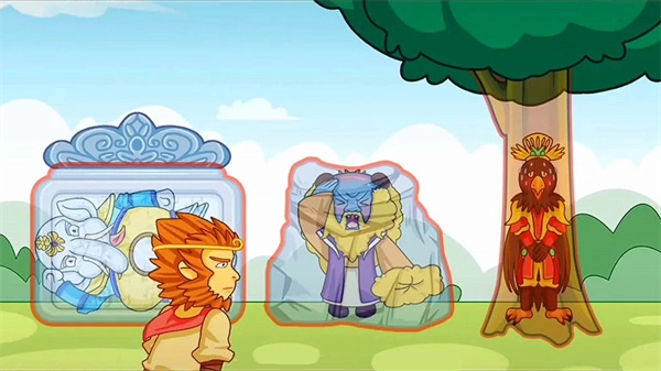 3、你要帮悟空师徒四人躲避妖精,通过点击角色来改变不同的形态。