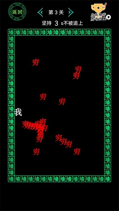 1、随着关卡内时间的推移,“穷”字的数量会逐渐增多,移动速度也会加快