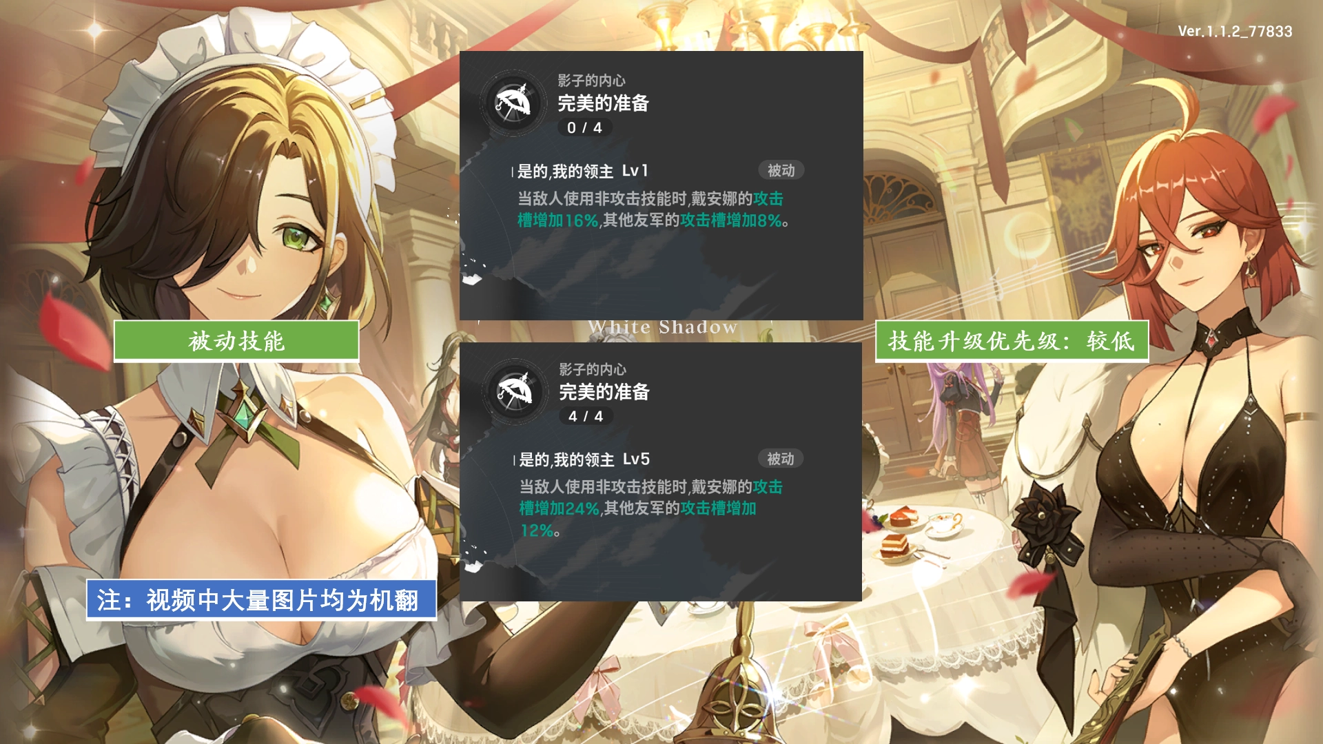 二技能:是个对友军使用的单体拉条技能,最多可以拉75的行动条,并且减少S3技能冷却2回合,这个技能算是戴安娜PVE中的核心技能,可以让自己的主C,高频率使用大招,与此同时带来的问题就是必须绑定水辅这种回MP的角色,甚至还是会出现MP不够用的情况。升级技能拉条的提升还是比较多的,不过还是得看自己的阵容配速,目前按照需求升级技能,够用就行。