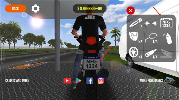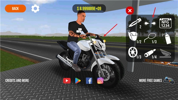 2、在这里就能够自由的改装摩托车了,例如在车头上加入闪闪的灯光。