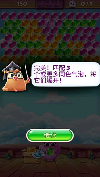 3、完美!匹配3个或更多同色气泡,就可以将它们爆开了。