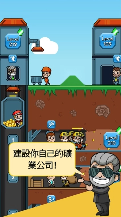 3、升级到5级的时候,大家就可以雇佣经理了,矿区经理,电梯经理和地面经理,都是一百金币,经理的作用就是一直监督工人干活,可以使玩家们不用一直点击工人干活,这个时候挂机他们也会自动干活。随着矿区2的开采,经理的雇佣价格也会相应的变高。矿屋1等级为10的时候,地下的矿中就会出现两个黄色衣服的矿工,一次可挖94个金币的矿石。