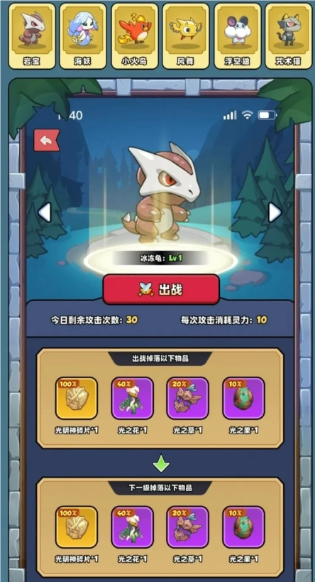 宠物解锁即可上阵参与战斗,宠物每次攻击,都能掉落稀有道具