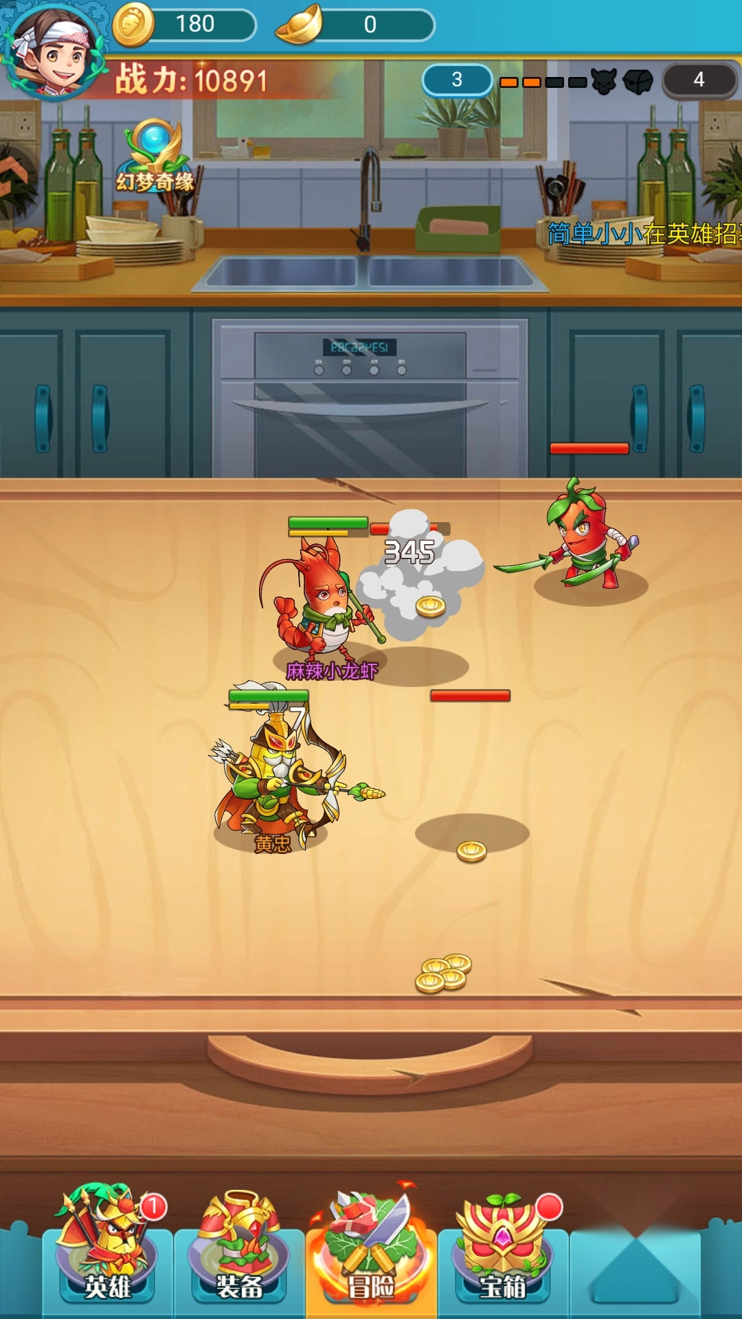 1、进入游戏开启闯关后,快速点击屏幕就能发射小刀,助力武将作战。