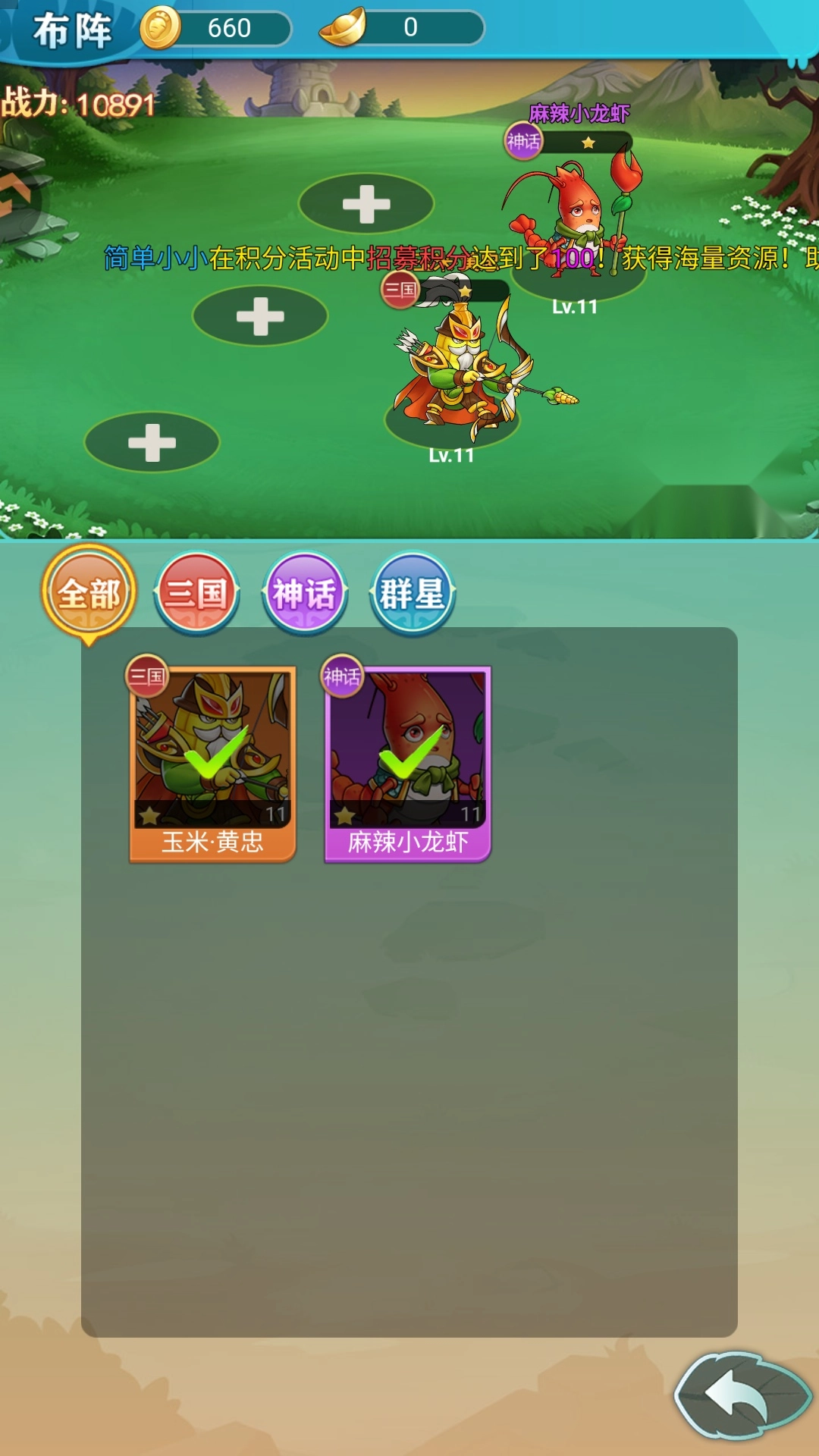 2、招募到新武将可以进行排兵布阵。