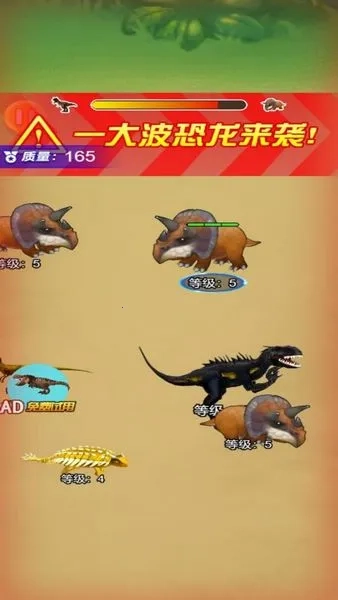 3、卡通画面:画面采用卡通版设计,惟妙惟肖的恐龙造型给玩家带来穿越般的感觉,让玩家仿佛置身于恐龙世界,极大地增强了游戏的沉浸感。