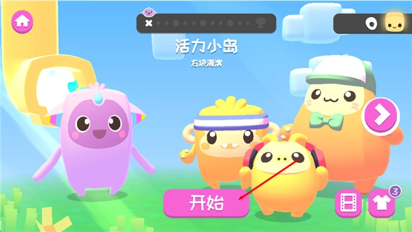 1、进入到游戏内,可以先点击右下角的按钮来选择自己喜欢的服装开始冒险,点击中间的开始按钮将会直接进入到关卡内;