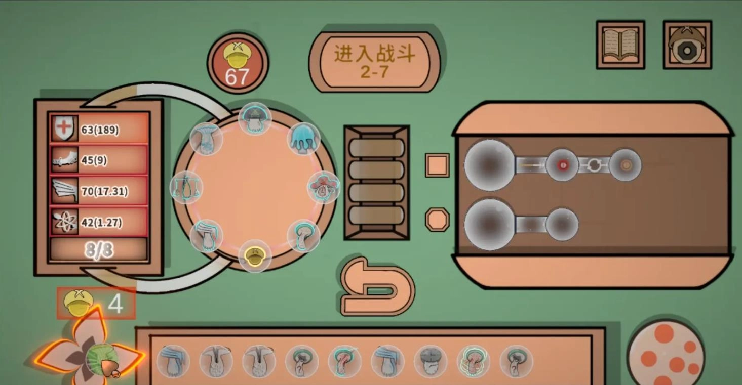 游戏与普通的割草游戏不一样,在这里你可以事先选择不同的卡牌来组建卡组进行闯关,在闯关过程中获得的卡牌是从你的卡组中选择的,各种蘑菇效果可以让你自由去使用,通过不断D牌来获得更强的组合搭配,击退一波接着一波的敌人来完成你的挑战吧。