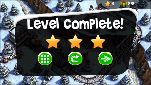 3、将圣诞节元素与火车主题巧妙融合,帮助圣诞老人在一定时间内将礼物送给孩子们。