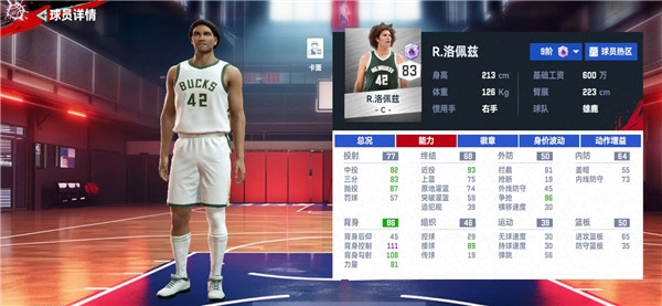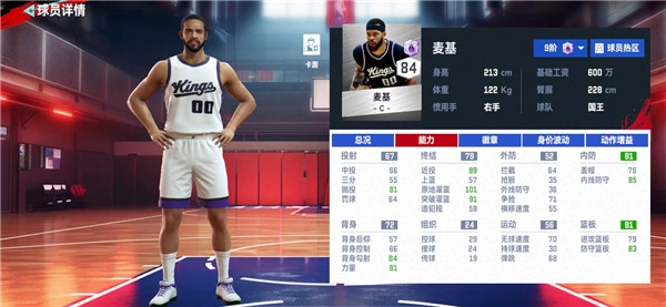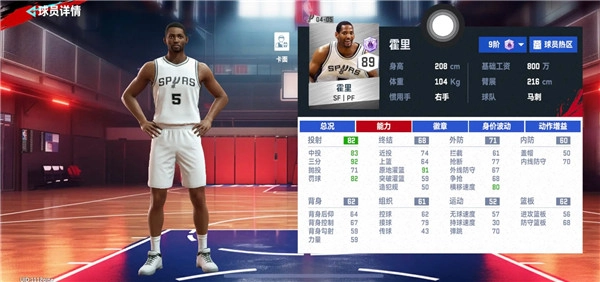 总结,空间内线选手,三分球稳定。在己方有强篮板保证的情况下,作为稳定火力点,可以胜任。建议看阵容选择。不推荐优先突破。