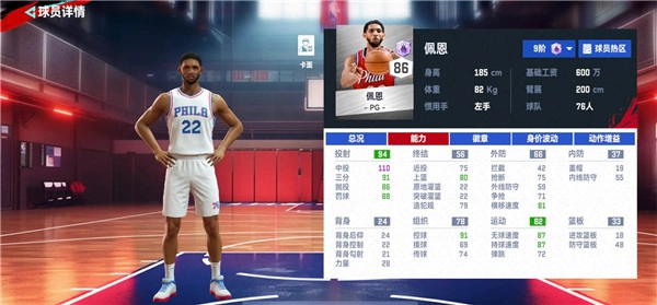 游戏中他和上一位提到的沃克定位比较类似,优秀的移速、运控、组织传球,配合漂亮的投射属性,作为进攻发起点或者终结点都是不错的选择。