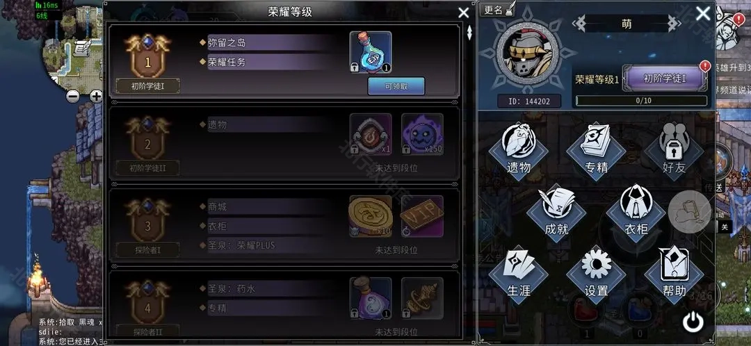 点击右上角头像可查看当前荣耀等级。